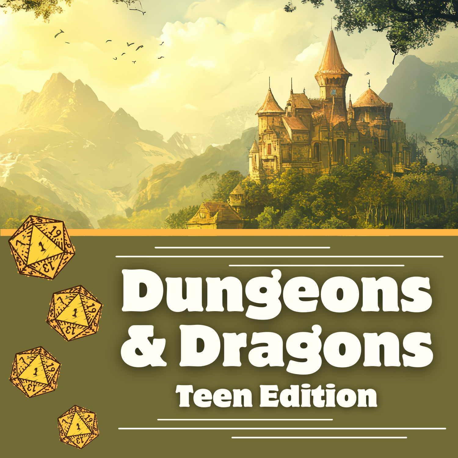 You are invited you to join the quest! Dungeons and Dragons is a collaborative tabletop role-playing game where players create characters to go on adventures in a fantasy world. For ages 12-17. All materials will be provided.