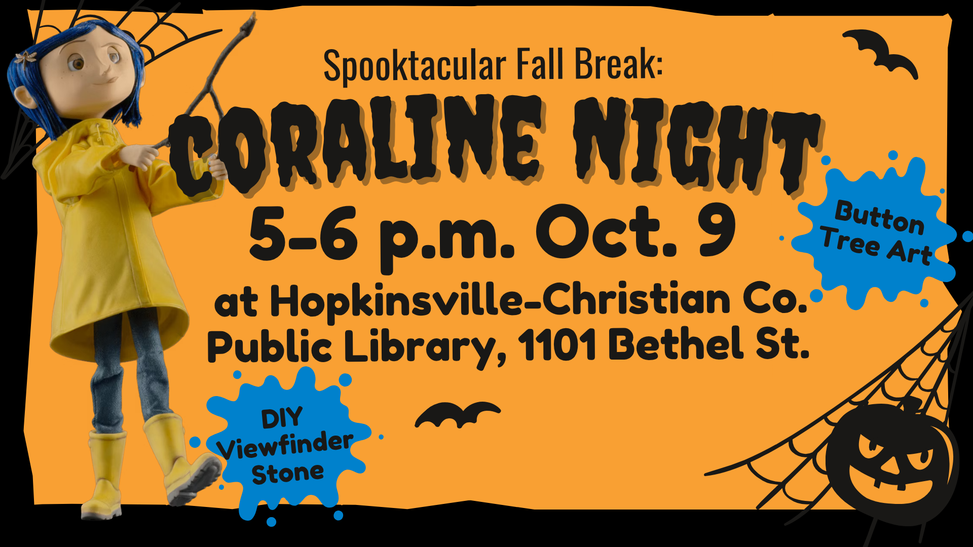 During “Books and Treats,” 10 a.m.-noon Oct. 30, guests are invited to dress up and trick-or-treat while exploring our Storywalk along the Greenway Trail near