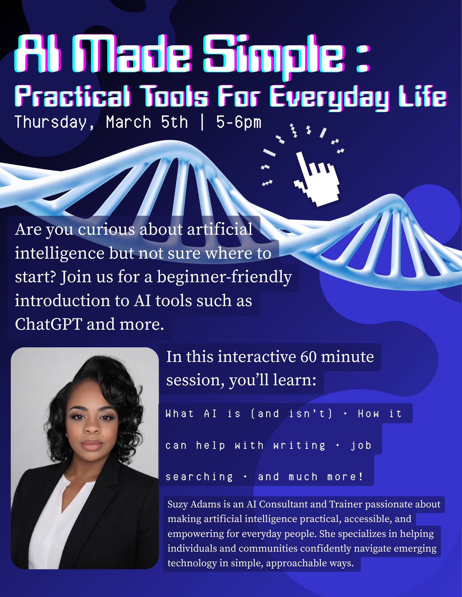 Are you curious about artificial intelligence but not sure where to start? Join us for a beginner-friendly introduction to AI tools such as ChatGPT and