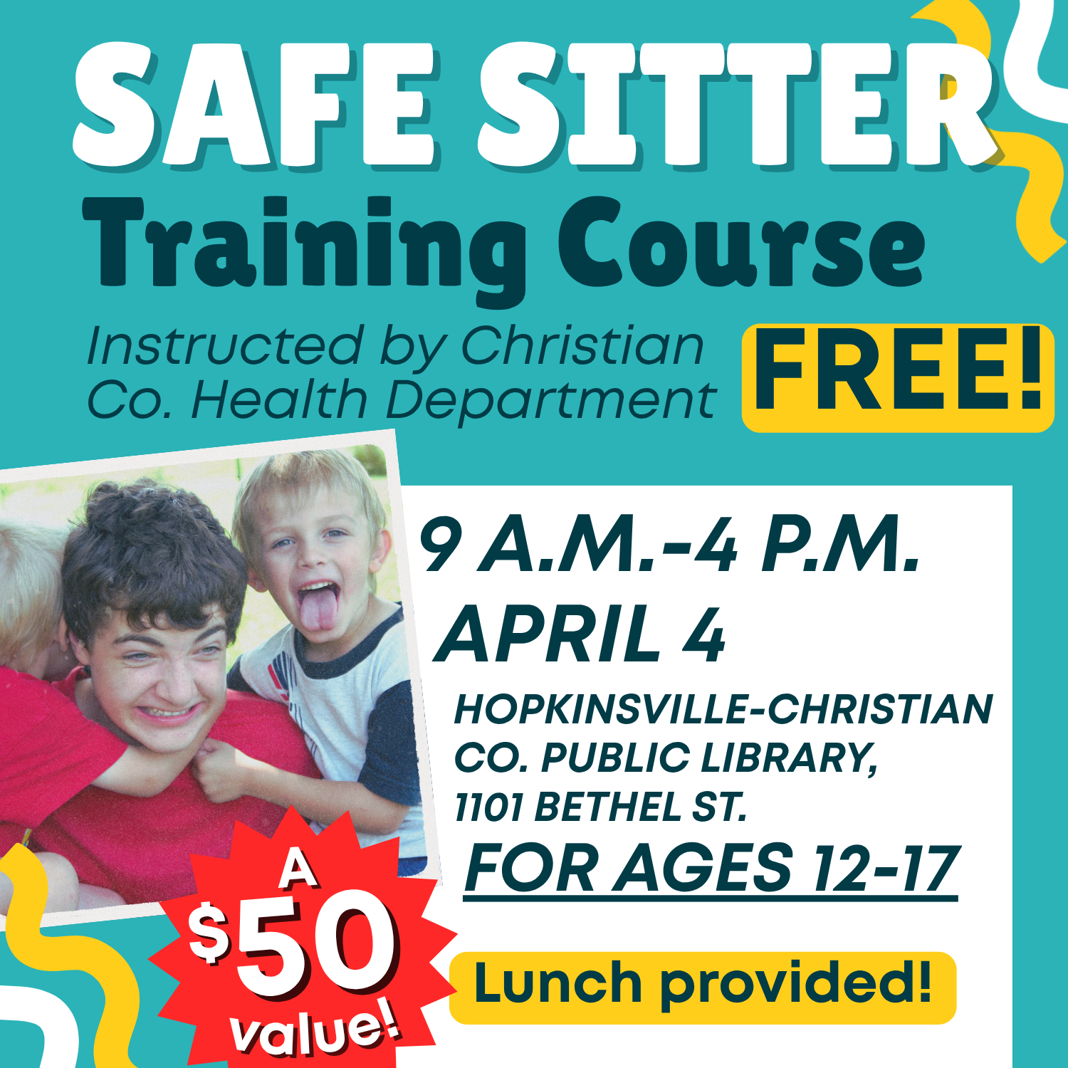 Safe Sitter Training Course Hey tweens and teens! Want to make some cash this summer babysitting? Take the first step by getting Safe Sitter Certified. This $50 course is March 23, 2026
